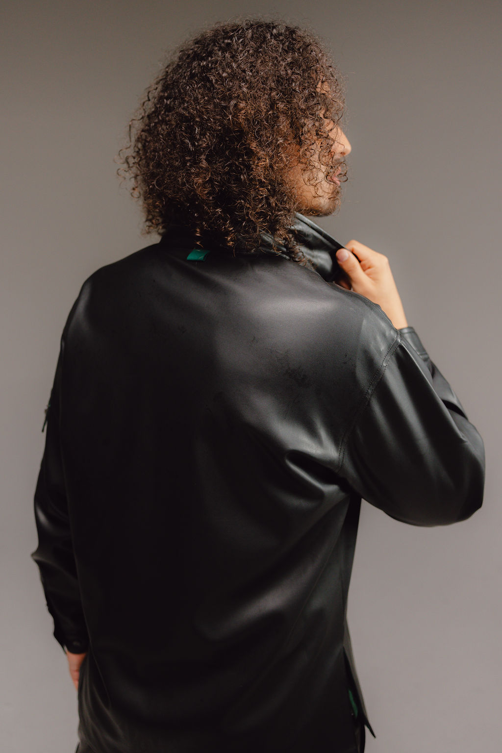 Stay stylish and comfortable all day with this PU Leather Jacket, crafted using the innovative Breathing GOUHI fabric from Japan. Unlike traditional synthetic leather, this cutting-edge material resolves the common issue of PU leather trapping heat and preventing airflow. With Breathing GOUHI, the jacket allows your skin to breathe, so you can wear it comfortably all day without worrying about stuffiness.