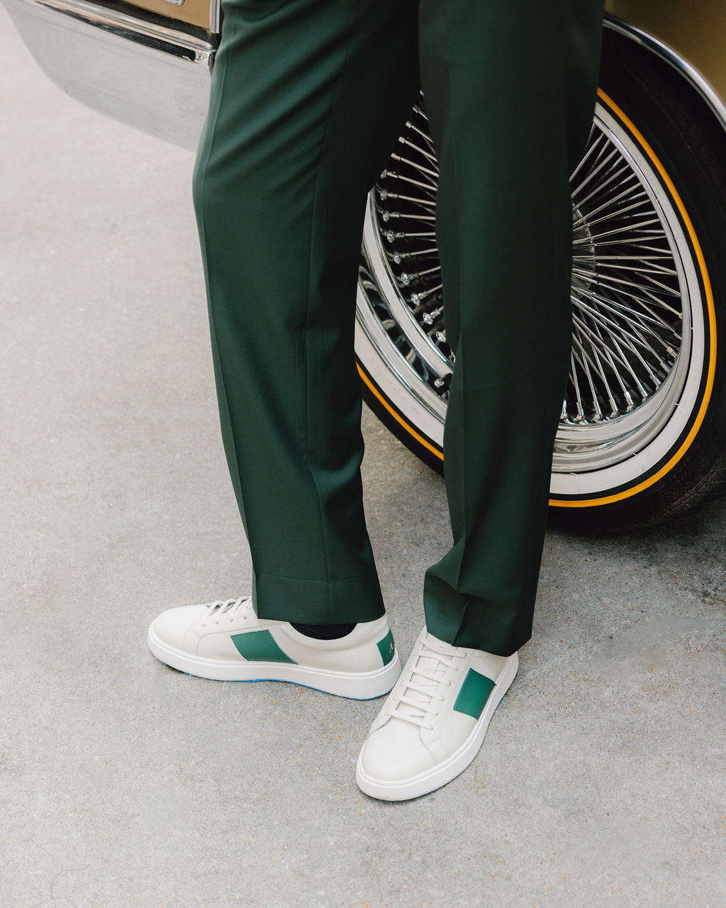 Designed without belt loops, the clean waistband features functional side adjusters for a custom fit and streamlined silhouette. The result is a minimalist, modern trouser that honors classic craftsmanship while embracing understated elegance.