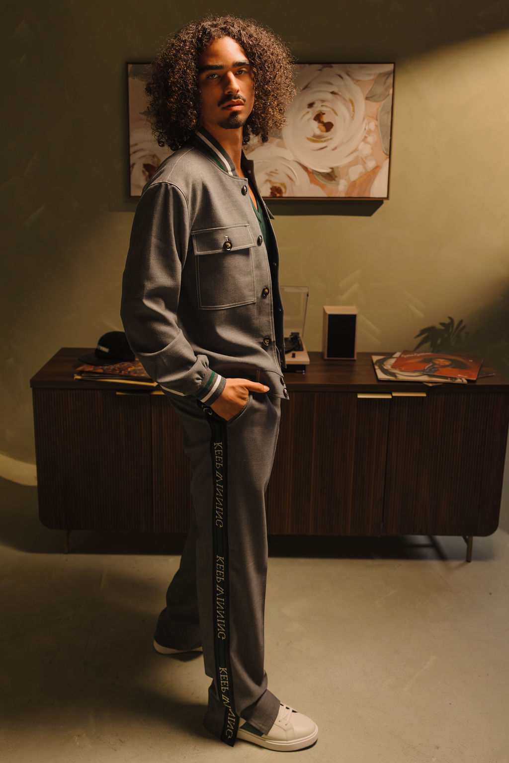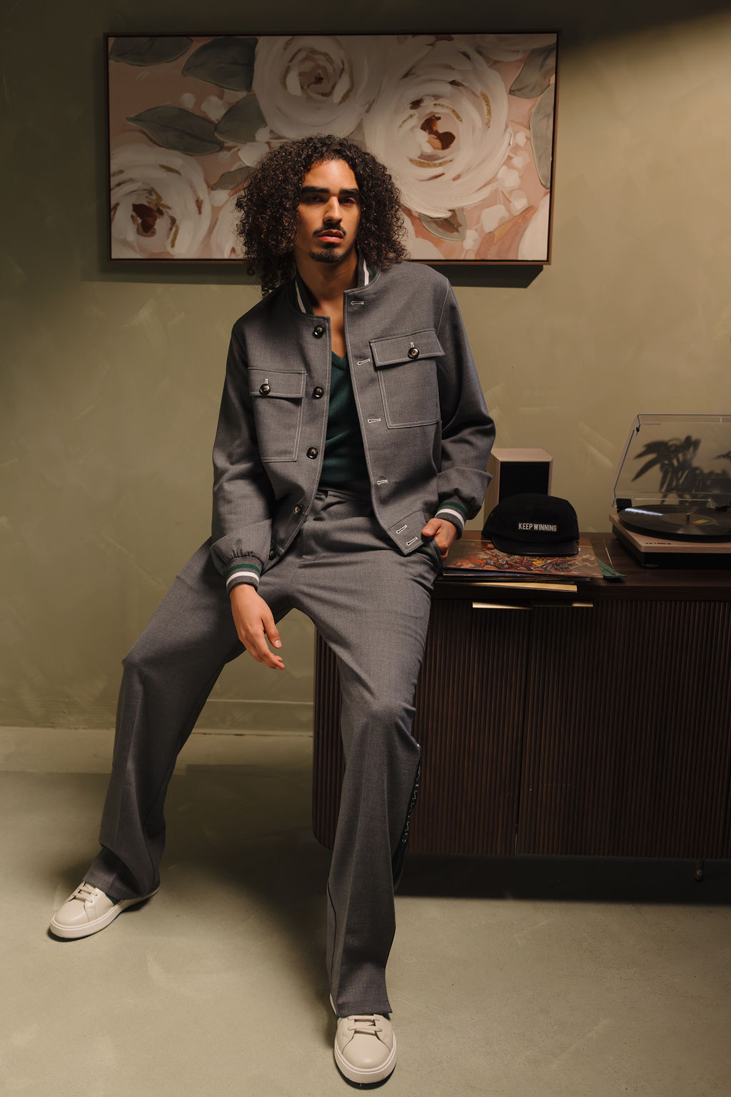 Designed with timeless style and smart detailing, theTracksuit Trouser offer a sophisticated look with a modern twist. Made from the same premium fabric blend as the matching tracksuit jacket— wool and polyester. The straight-fit silhouette creates a sleek, tailored appearance, combining effortlessly with the matching Relaxed Lapelless Blazer for a polished look. Keep Winning ribbon runs down the sides, adding a stylish touch.